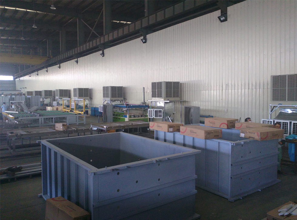 對于五金工廠車間降溫解決方案:針對機械加工車大面積、工作崗位不固定、有大量發(fā)熱設(shè)備、還伴隨油污異味等惡劣問題,通過環(huán)保空調(diào)(冷風機)達到換風、去異味油污、降溫,再利用工業(yè)大風扇大面積微風流動帶動全方位的空氣流通,可一次性解決高大空間通風降溫難題。